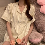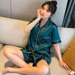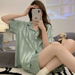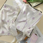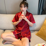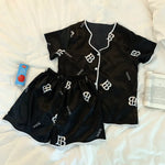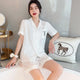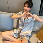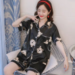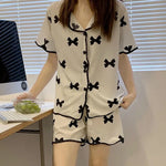 French Style Summer Sleepwear Women's Ice Silk Short Sleeve Print Home Clothes Set Breathable Casual Sleepwear Polyester