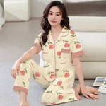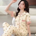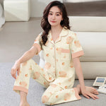 Lightweight Short Sleeve Pants Set Sleepwear For Young Women Spring Autumn Summer Style Casual Breathable Home Clothes Outerwear
