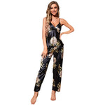 New Fashionable Printed Backless Strap Dress Sexy Casual Sleepwear Set Women Simple Simulation Silk Home Clothes