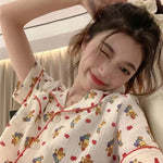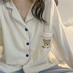 New Women's Bear Cartoon Pajamas Set Sweet Home Clothes Spring Autumn Winter Comfortable Breathable Long Sleeve Sleepwear