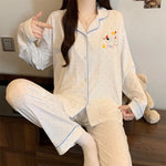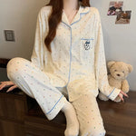 Polka Dot Dog Print Long Sleeve Women's Sleepwear Set Spring Autumn Home Leisure Comfortable Two-Piece Suit Milk Silk Polyester Fiber