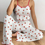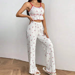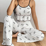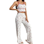 Sexy Casual Women's Home Clothes Set Sleeveless Tank Top And Pants Leisure Breathable Polyester Threaded Pattern Sleepwear