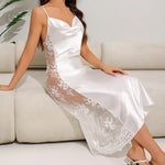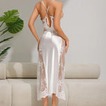 Sexy Long Lace Backless Strap Sleepwear Women's Home Clothes V-neck Sleeveless Ankle-length Silk Polyester Ultra-thin Summer Spring