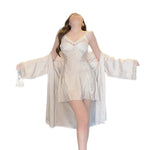 Sexy Women's Satin Lace Two-Piece Set Ice Silk Trim Floral Embroidery Nightgown Nightgown With Strap Sleepwear Breathable Summer