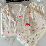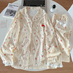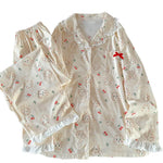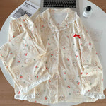 Spring Autumn Cotton Simulation Sleepwear Women's Long Sleeve Home Clothes Breathable Comfortable Sweet Style Polyester Fabric
