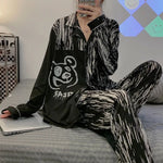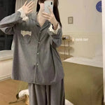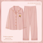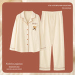 Spring Autumn Women's Long Sleeve Thin Casual Comfortable Home Clothes Set Polyester Milk Silk Medium Weight Sleepwear