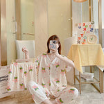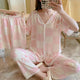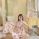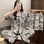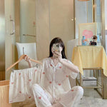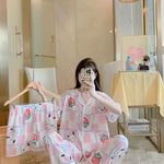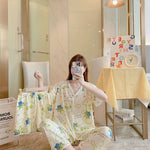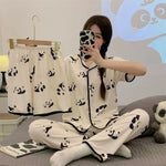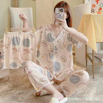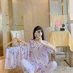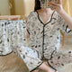 Spring Autumn Women's Sleepwear Short Sleeve Loose Home Clothes Cute Girl's Pajamas Set Casual Breathable Polyester Silk
