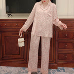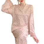 Spring Summer Women's Sleepwear Ice Silk Long Sleeve Leopard Print High-End Lace Trim Home Clothes Set Breathable Casual Sleepwear