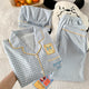 Summer Cloud Cotton SpongeBob Sleepwear Women's Short Sleeve Three-piece Set Blue Plaid High Aesthetic Home Clothes Photography