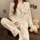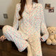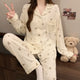 Sweet New Style Long Sleeve Sleepwear Women's Spring Butterfly Knot Long Pants Lazy Home Clothes Outdoor Wearable Set