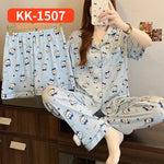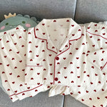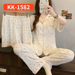 Sweet New Style Pleated Sleepwear Short Sleeve Three Piece Set Women's Casual Full Print Home Clothes Breathable Comfortable