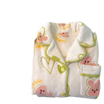 Thick Coral Fleece Pajamas Women's Autumn Winter Cute Flannel Warm Home Clothes Set Casual Sleepwear Breathable Polyester
