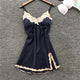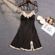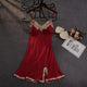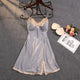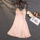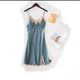 Women's Summer Spring Thin Sexy Strap Ice Silk Nightgown Silk Lace Trim Slit Home Clothes With Chest Pad Nordic Style Casual Sleepwear