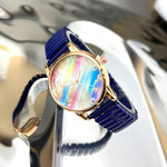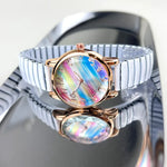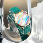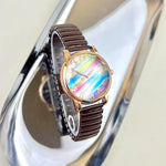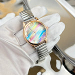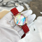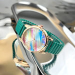 Fashionable Rainbow Candy Elastic Band Quartz Women's Watch Casual Stylish Elastic Strap Student Wristwatch Iron Material