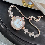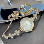 Ladies Floral Engraved Mother-of-Pearl Quartz Watch Pull-Out Bracelet Design Four Leaf Clover New Style Student Watch