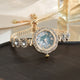 Mirror Material: Ordinary Glass Movement: Quartz Strap Material: Alloy Buckle Style: Drawstring Display Type: Pointer Dial Shape: Round Gender: Women's Weight: 62g