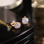 925 Sterling Silver Square Moissanite Earrings Women's Four Claw Clasp Simple Elegant Geometric Design Diamond Embedded