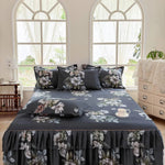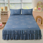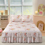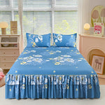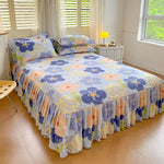 Aloe Vera Cotton Flocking Bed Skirt Single Piece Double Sided Princess Style New Cotton Bed Cover Plant Floral Pattern