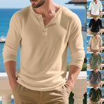 Autumn Heavyweight Long Sleeve Men's T-Shirt Casual Round Neck Loose Commuting Base Layer Henry Shirt Male Pure Color Polyester Thread