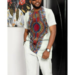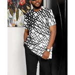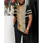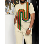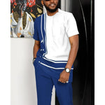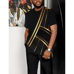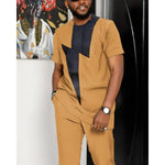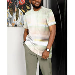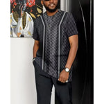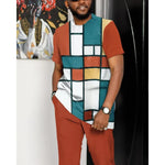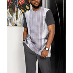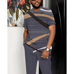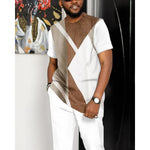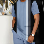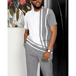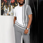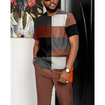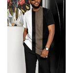 Casual Men's Shirt Walking Set Style Short Sleeve Long Pants Summer Season Basic Popular T-Shirt Top