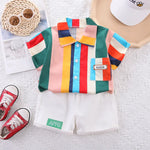 Pattern: Stripe Quantity: 2 Pieces Set Sets Type: Shorts Sets Occasion: Daily Fabric Type: Cotton Neckline: Turndown Sleeve Length: Short Sleeve Style: Casual Season: Summer Fit Type: Regular Fit Gender: Boy'S Function: Comfort Weight: 150g...