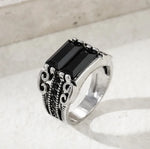ChenRui Retro Black Face Zircon Ring Fashionable Versatile Geometric Pattern Alloy Jewelry For Unisex