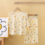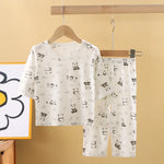Children's Summer Thin Sleepwear Set Baby Home Clothes Uksil Silk Sleeveless Air Conditioning Suit Boys Girls Animal Pattern