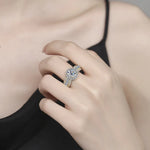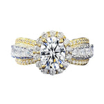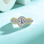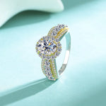 Elegant Double-Tone S925 Sterling Silver Oval Moissanite 1.5 Carat Ring European Style Geometric Pattern Women's Jewelry