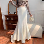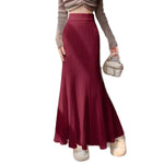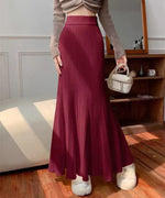 Elegant High Waist Elastic Waist Fish Tail Half Length Knitted Long Skirt For Women Autumn Winter New Style Solid Color Polyester Rayon Fiber