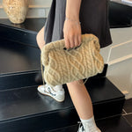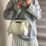 Fall Winter Knitted Wool Bag Women's Versatile Chain Crossbody Underarm Handbag Clip-On Bag Square Shape Fashionable Splicing And Weaving