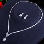 glam wedding water droplets copper plating inlay artificial gemstones white gold plated rhodium plated jewelry set