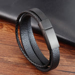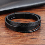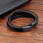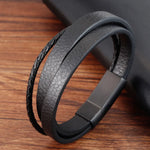 Handcrafted Leather Stainless Steel Bracelet Multi-layer Men's Wristband Retro Titanium Steel Rope L19133 Geometry Pattern