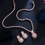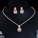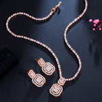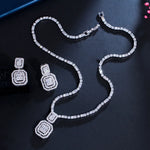 luxurious bridal square copper inlay artificial gemstones white gold plated rhodium plated jewelry set