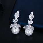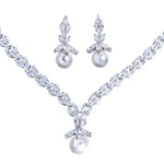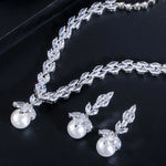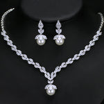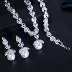 luxurious bridal water droplets copper plating inlay artificial gemstones artificial pearls shell white gold plated rhodium plated jewelry set