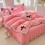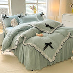 Luxurious European Style Bedding Set New Version Embroidered Lace Flocking Three Or Four Piece Pure Color Bed Skirt