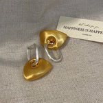 Multi-Wear Metal Heart-Shaped Earrings With Frosted Surface And Gold Plating Elegant Luxury Style For Women Jewelry Accessories