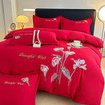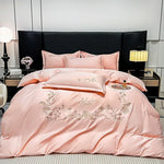New high-end embroidery four-piece solid color elegant cotton skin-friendly brushed bedding four-piece bed sheet quilt cover set