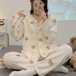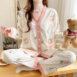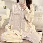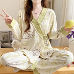 Summer Thin Maternity Nightgown Feeding Sleepwear Women's Spring Autumn Breathable Sweat Absorbing Large Size Nursing Set