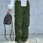 Women's Loose High Waist Cargo Pants Fashion Street Style Retro Denim Jeans With Pockets Cotton Stretchy Long Trousers